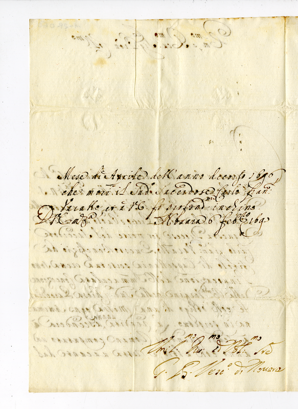 Lettera del vescovo di Novara (1695 febbraio 6)