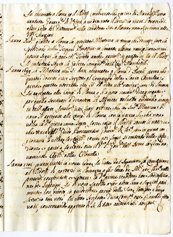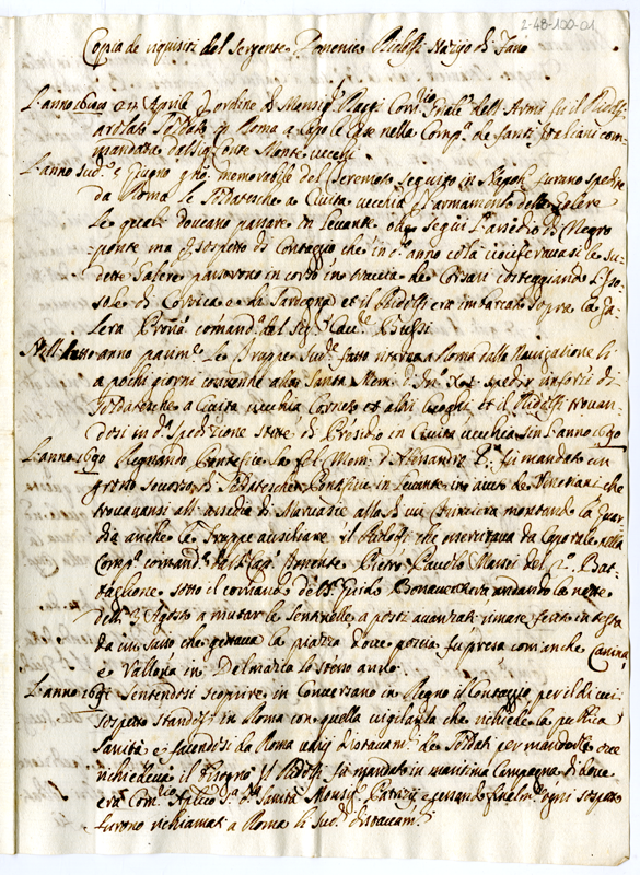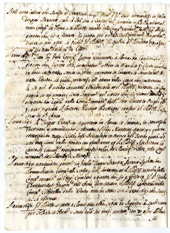 Copia de requisiti del Sergente Domenico Ridolfi Nazio di Fano (1700-1721)