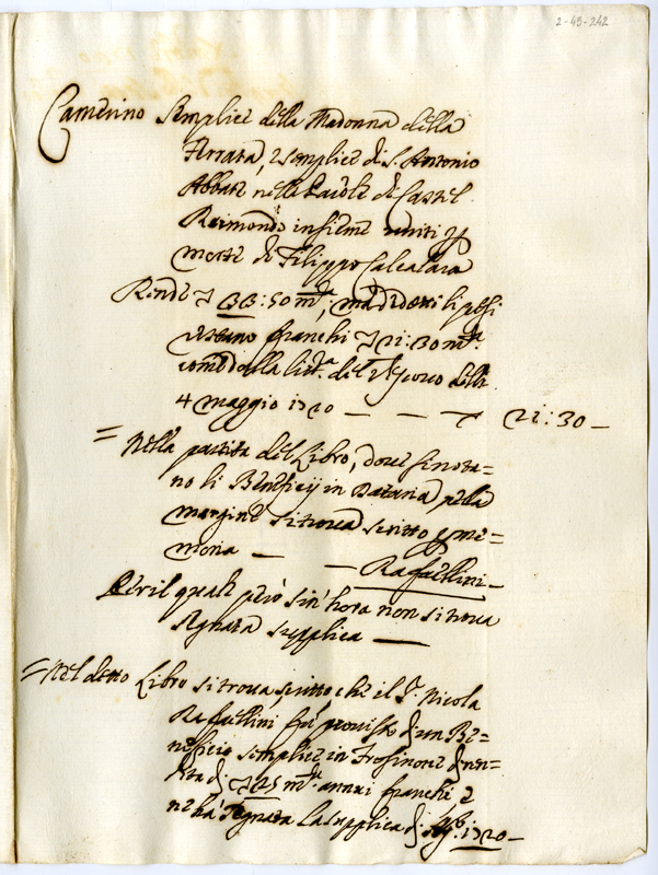 Beneficio semplice della Madonna della Ferrata e di Sant'Antonio Abbate di Camerino vacanti per morte di Filippo Calcalara (1720)