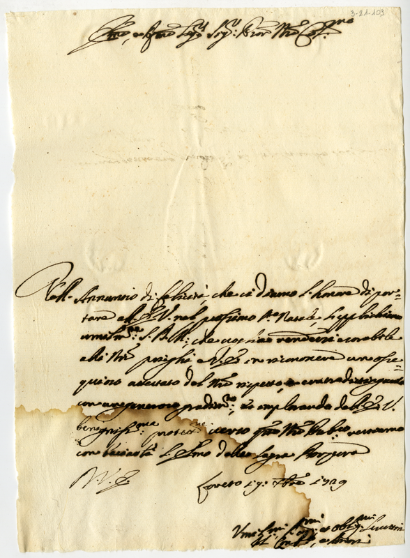Lettera del gonfaloniere e priori di Loreto al cardinale Annibale Albani (1729 dicembre 19)