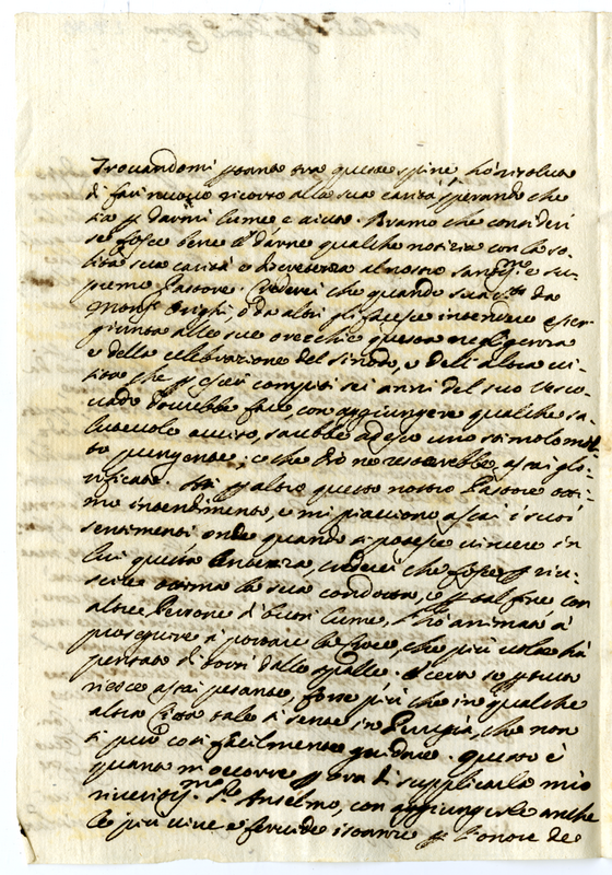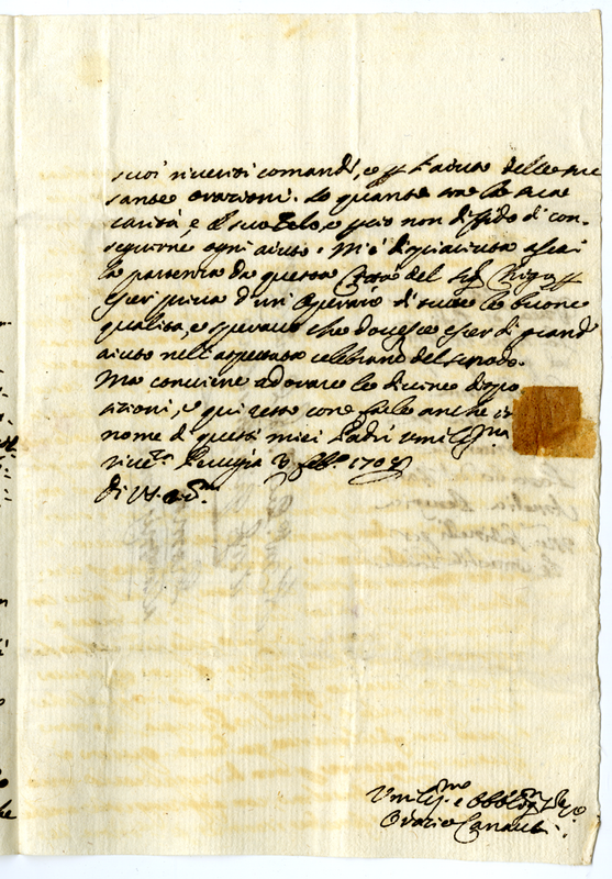 Lettera di Orazio Canauli al signor Giovanni Anselmo (1708 febbraio 3)
