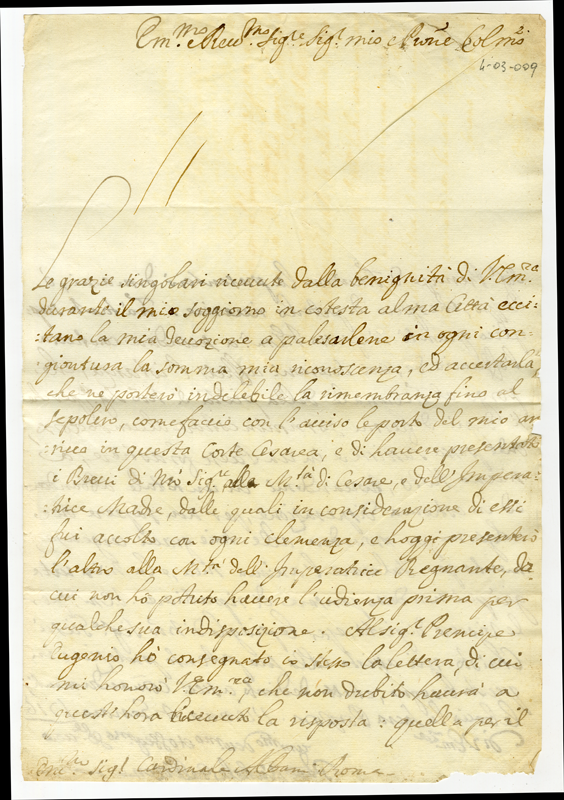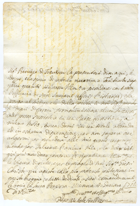 Lettera del principe Michele Gallizen al cardinale Annibale Albani (1716 gennaio 4)