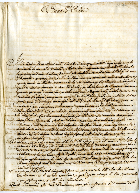 Lettera dei sacerdoti Pietro Berti, Michele Berti e Francesco de Mari maltesi a papa Clemente XI (1718)
