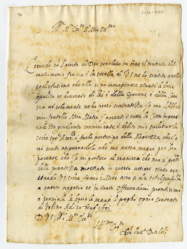 Lettera di Giovan Battista Baldi ad Orazio Albani seniore (1601 giugno 10)