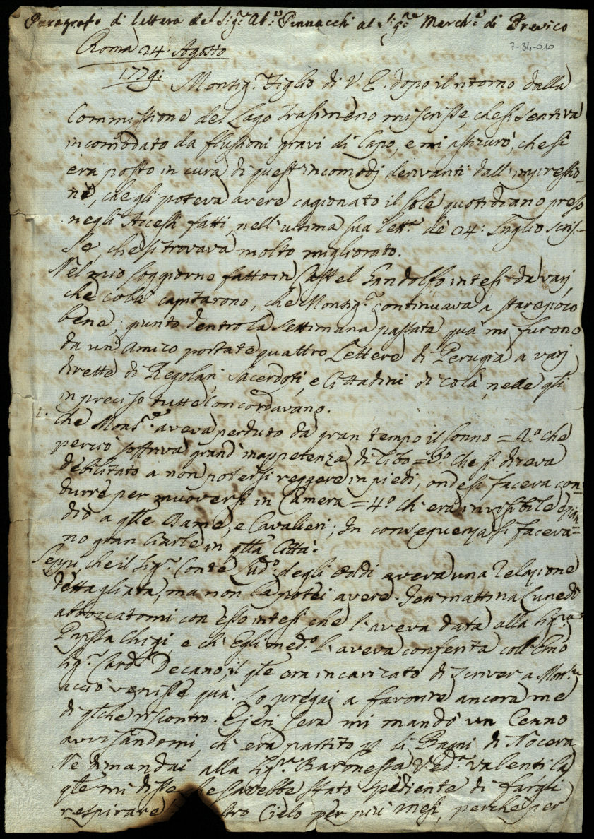Lettere diverse ricevute dal principe Orazio Albani nella permanenza in Urbino del 1779