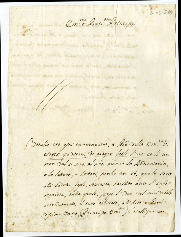 Invia cinque quinterni di cinque fogli l'uno, numerati da uno a cento, tributo all'alta e profondissima vostra intelligenza