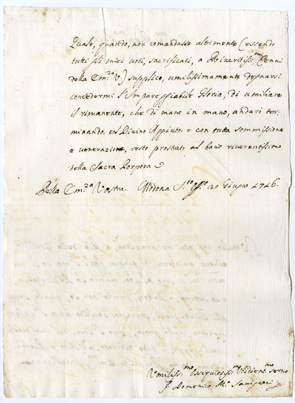 Lettera di fra Domenico Maria Savignoni al cardinale Annibale Albani (1716 giugno 20)