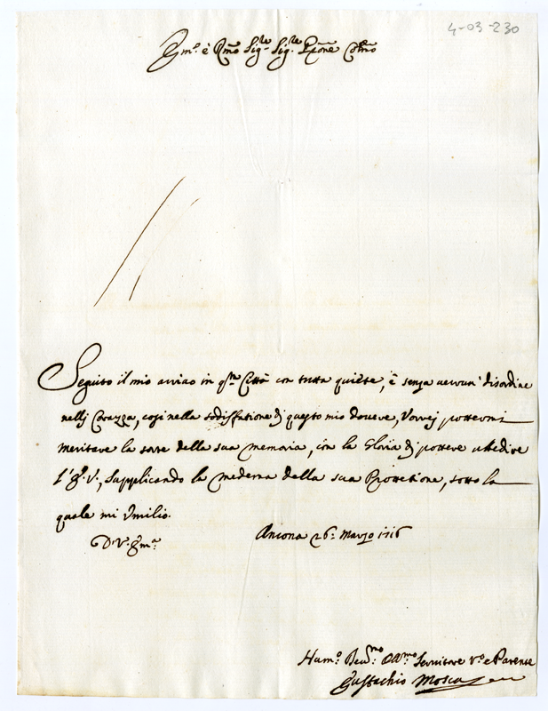 Lettera di Eustachio Mosca al Cardinale Annibale Albani (1716 marzo 26)