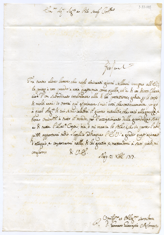 Lettera di don Gennaro Guerrasio al cardinale Annibale Albani (1717 dicembre 21)