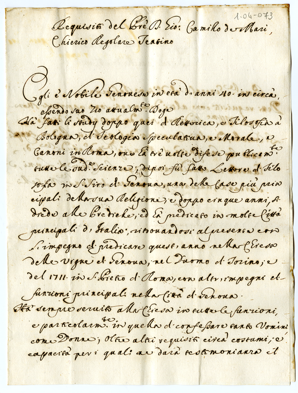 Requisiti di don Giulio De Mari proposto per la vacante chiesa di Sarzana
