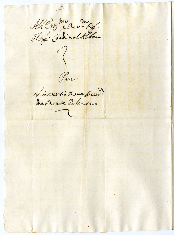 Lettera del sacerdote Vincenzo Bava al cardinale Albani (1690-1700)