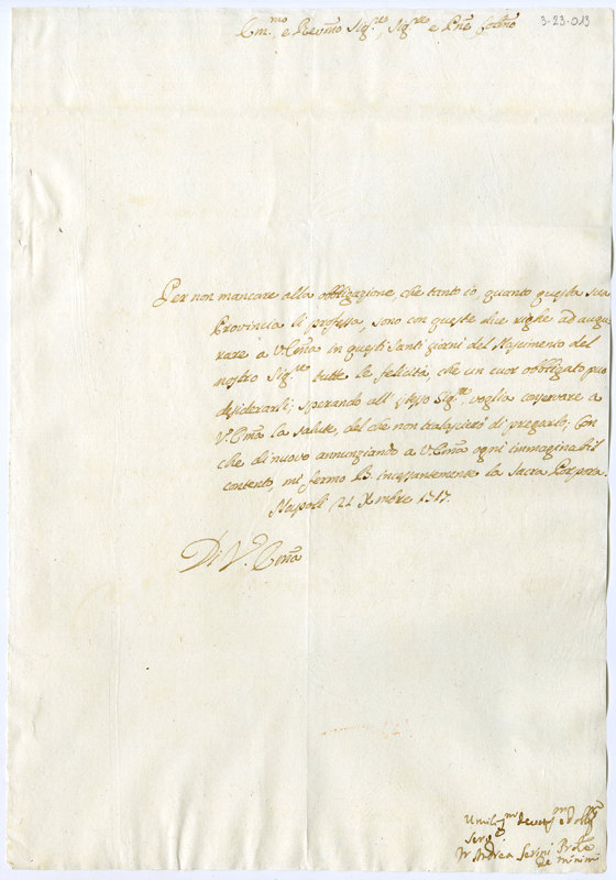 Lettera di fra Andrea Serini al cardinale Annibale Albani (1717 dicembre 21)