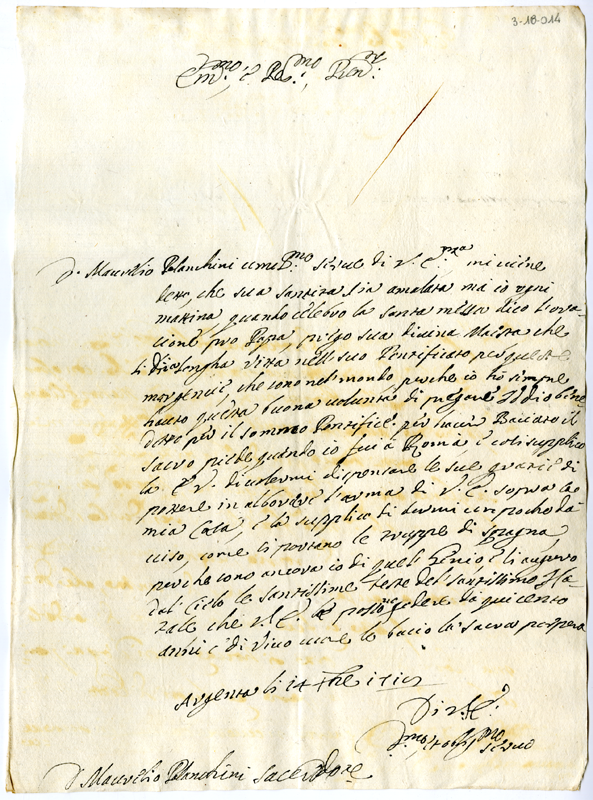 Lettera di Maurelio Palanchini ad Annibale Albani (1718 dicembre 14)
