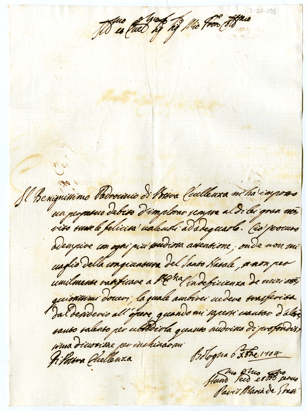 Lettera di Paris Maria de Grassi ad Annibale Albani (1704 dicembre 6)