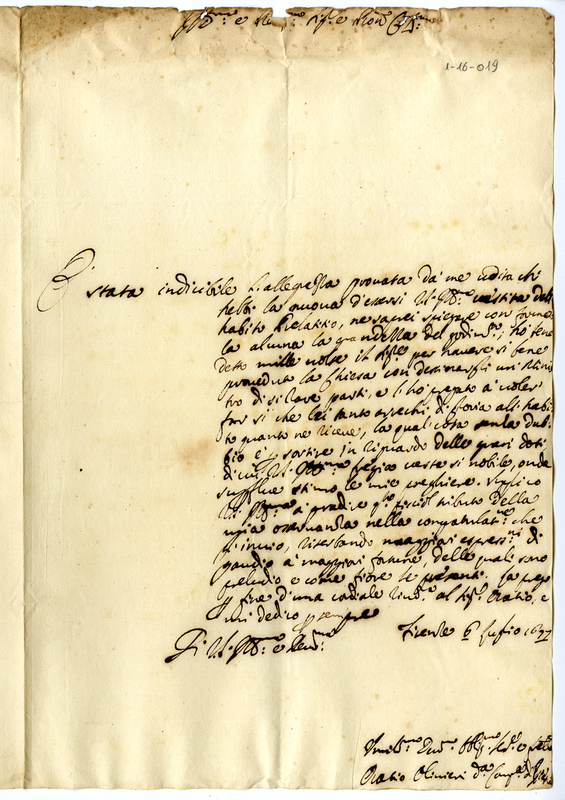 Lettera di Orazio Olivieri degli Abbati a Giovanni Francesco Albani (1677 luglio 6)