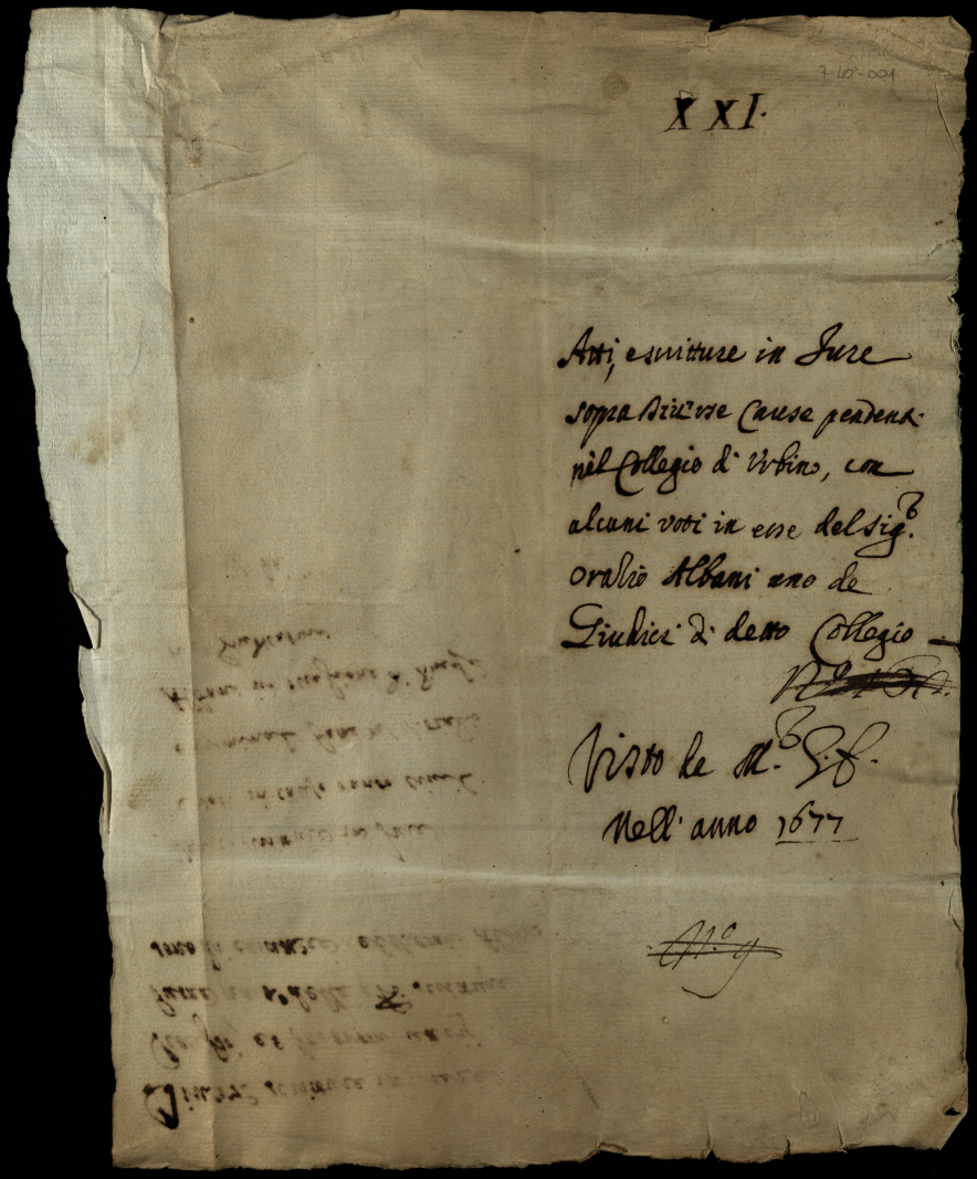 3. Atti e scritture in iure sopra diverse cause pendenti nel Collegio d'Urbino, con alcuni voti in esse del signor Orazio Albani, uno dei giudici di detto Collegio