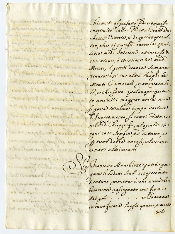 Credito alla comunità di Urbino di scudi 531 moneta d'ordine di Clemente XI