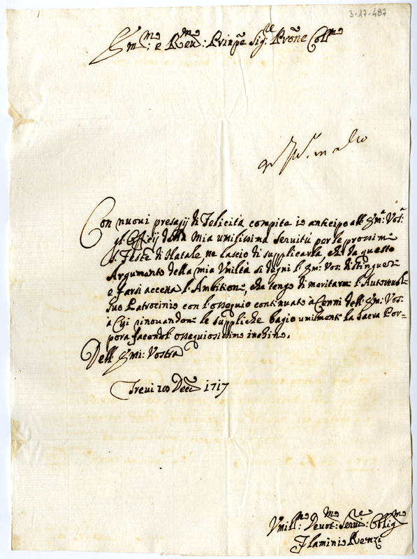 Lettera di Flaminio Renzi al cardinale Annibale Albani (1717 dicembre 18)