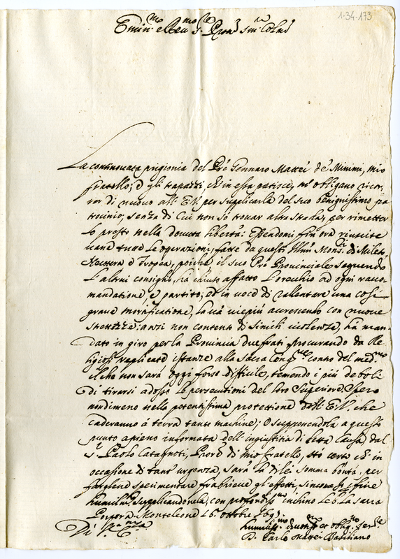 Lettera di Carlo Mattei a un cardinale (1695 ottobre 16)