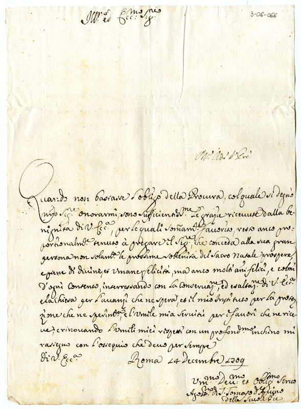 Lettera di Agostino di san Tommaso d'Aquino delle Scuole Pie ad Annibale Albani (1709 dicembre 14)