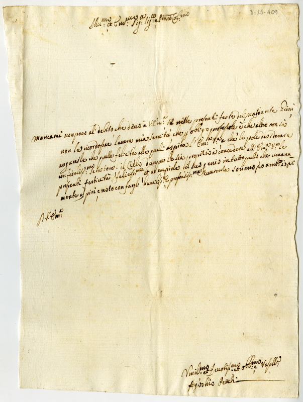 Lettera di Agostino Peteli al cardinale Annibale Albani (1721 dicembre 20)