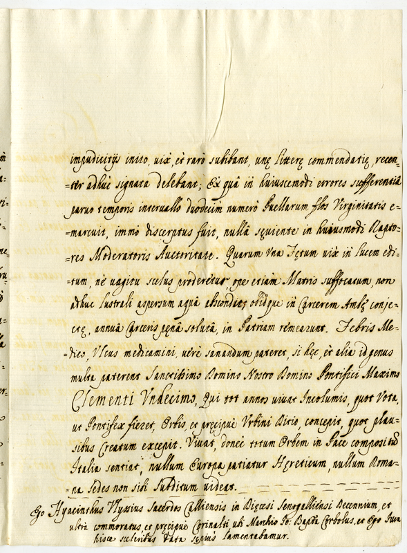 Lettera di Giacinto Vissi sacerdote di Cagli a papa Clemente XI (1700-1721)