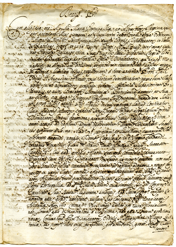 Lettera della Sacra Congregazione dei vescovi e dei regolari a Innocenzo XII (1694 dicembre 7)