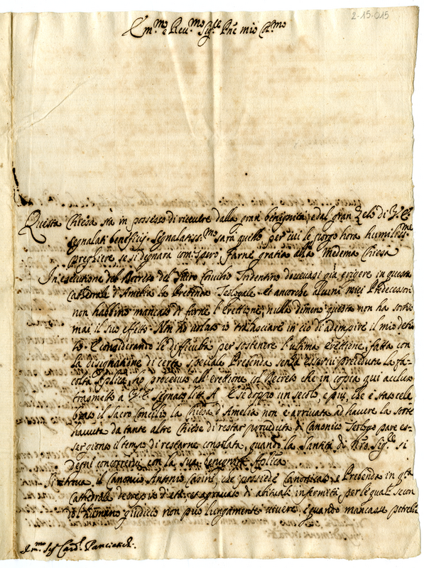 Lettera del vescovo di Amelia al cardinale Panciatici (1694 dicembre 5)