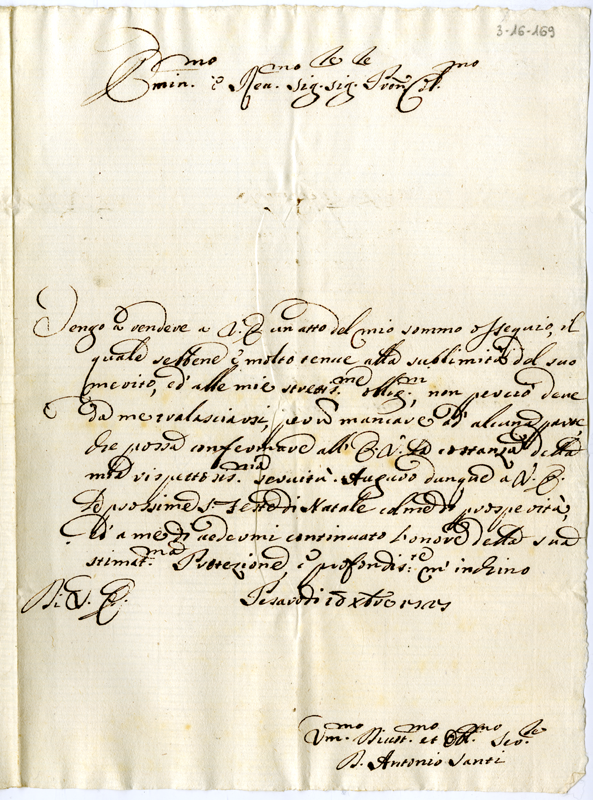 Lettera di don Antonio Santi al cardinale Annibale Albani (1727 dicembre 18)
