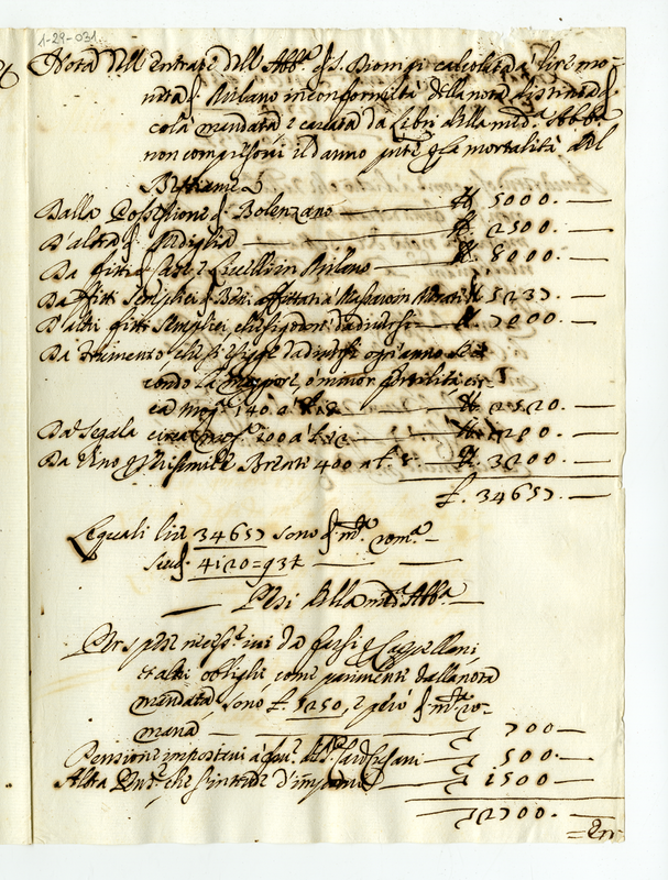 Nota dell'entrate del'abb. di S. Dionigi (1712)