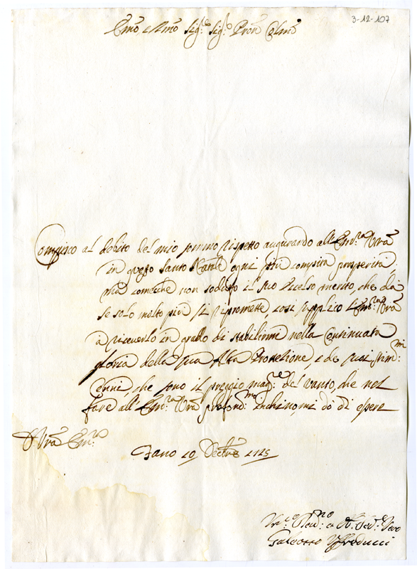 Lettera di Galeotto Uffreducci al cardinale Annibale Albani (1725 dicembre 10)