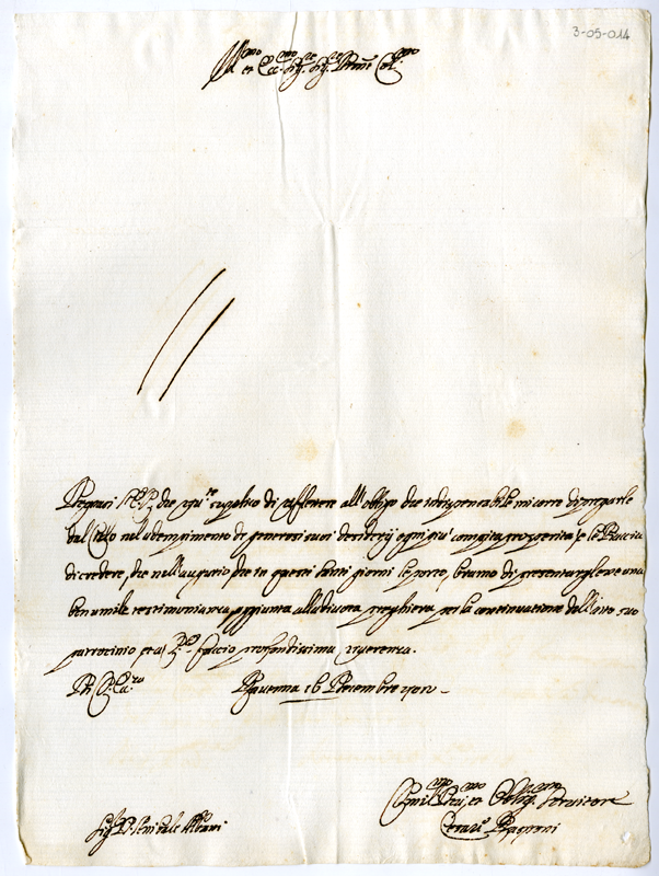 Lettera di Cesare Rasponi ad Annibale Albani (1708 dicembre 16)