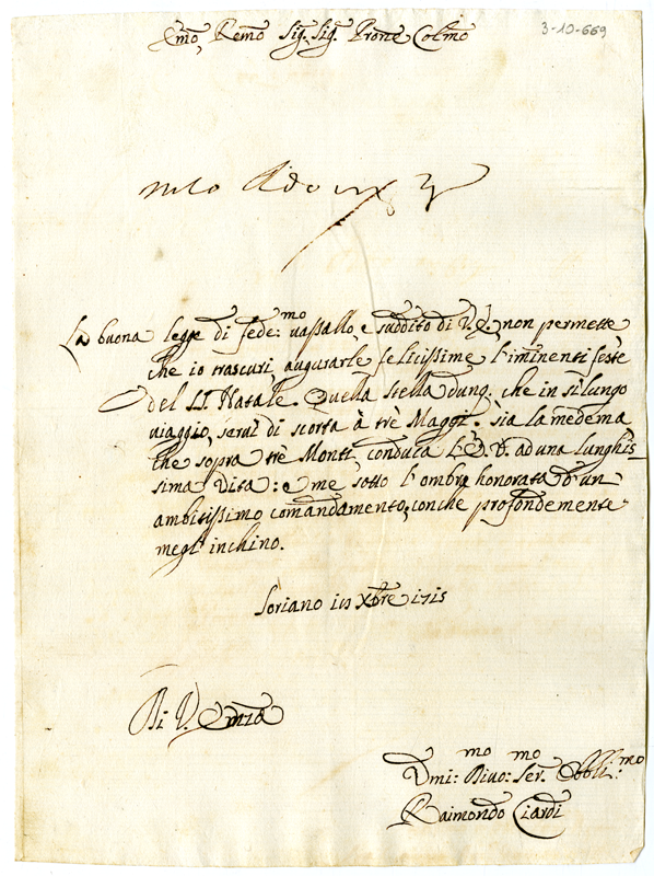 Lettera di Raimondo Ciardi al cardinale Annibale Albani (1715 dicembre 18)