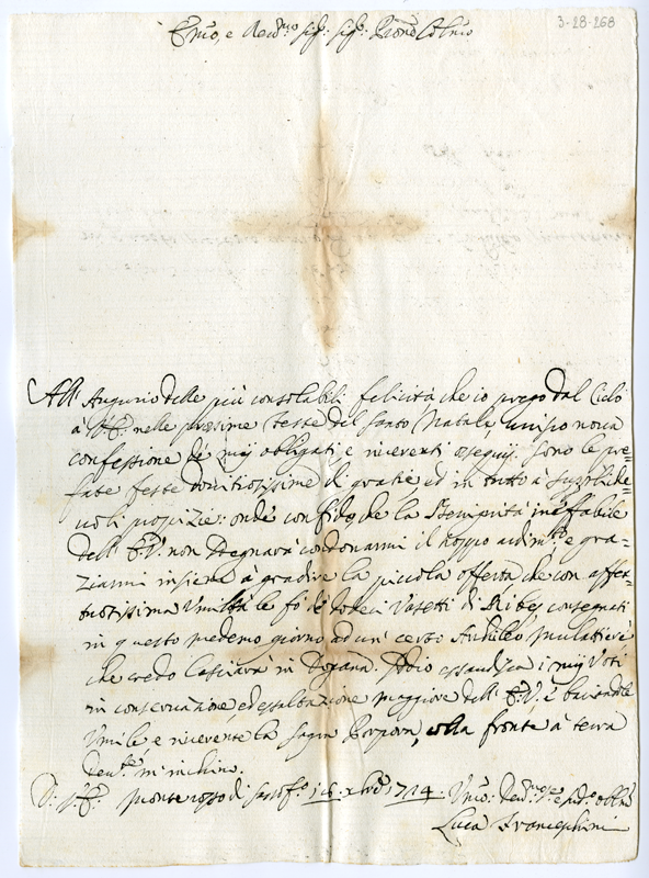 Lettera di Luca Franceschini al cardinale Annibale Albani (1724 dicembre 18)