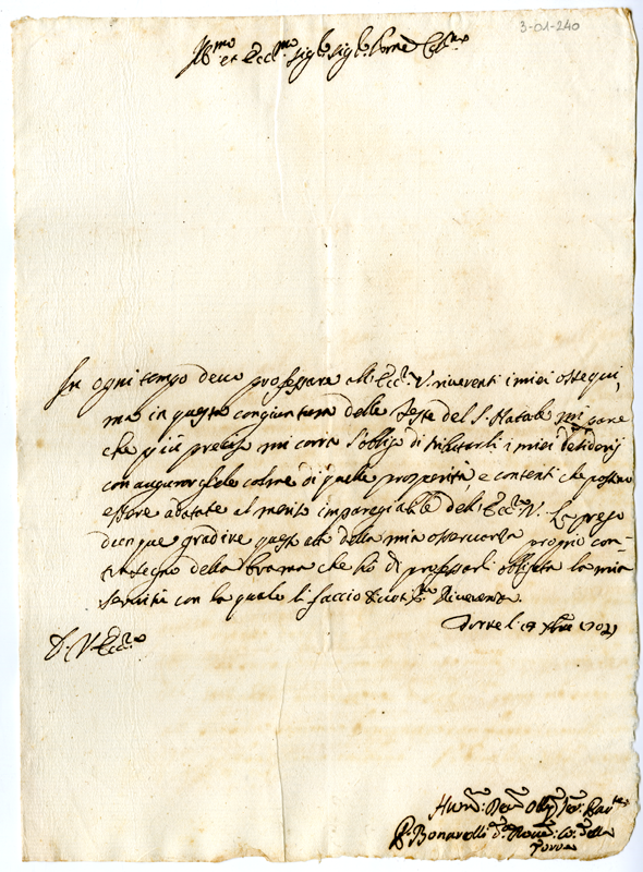 Lettera di Bonarelli della Rovere conte della Torre ad Annibale Albani (1704 dicembre 17)