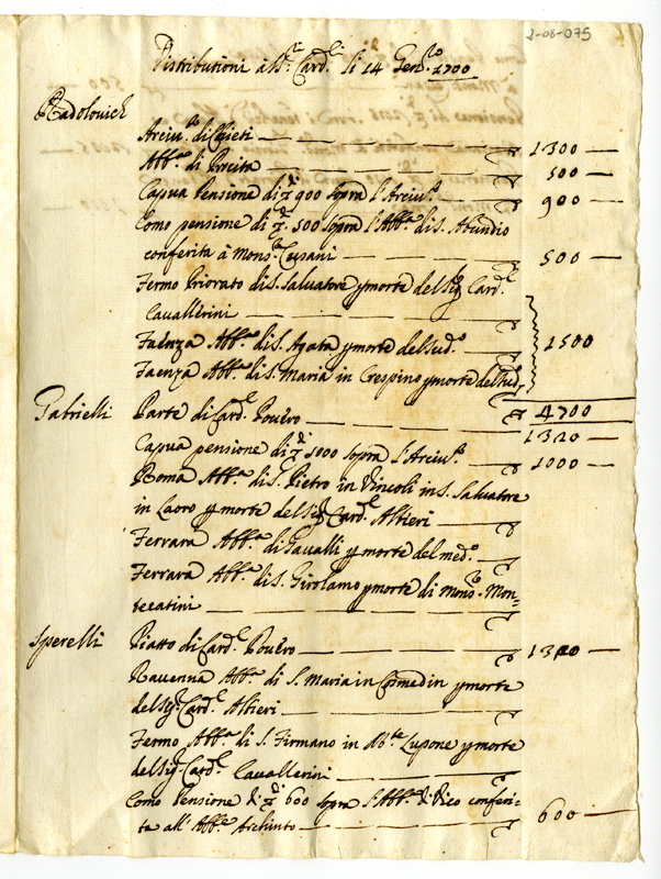 Distrubutioni à Signori Cardinali li 14 gennaro 1700