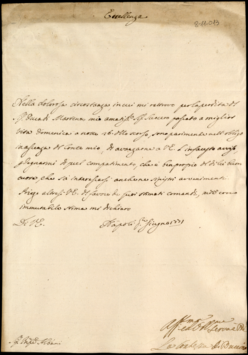 3. Lettere ricevute in Urbino dal Signor Principe Orazio Albani ultimo di questo nome nell'anno 1771