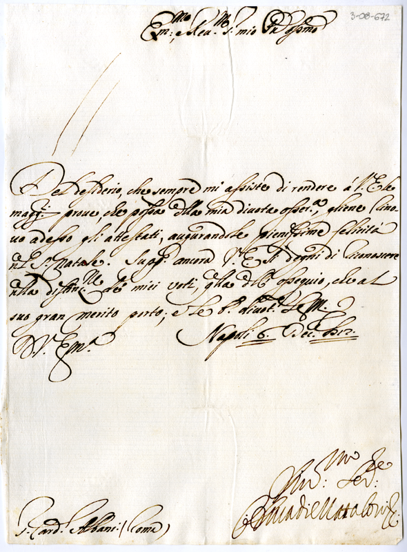 Lettera del duca di Mataloni al cardinale Annibale Albani (1712 dicembre 6)