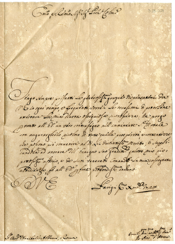 Lettera al cardinale Annibale Albani (1724 dicembre 1)