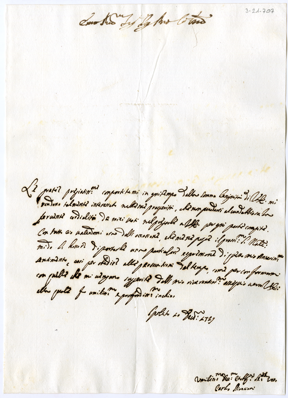 Lettera di Carlo Pianciani al cardinale Annibale Albani (1729 dicembre 10)