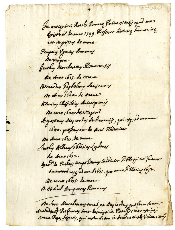 Elenco di nomi dei professori di lettere umane esistenti in Roma dall'anno 1599 al 1695 (1700-1721)