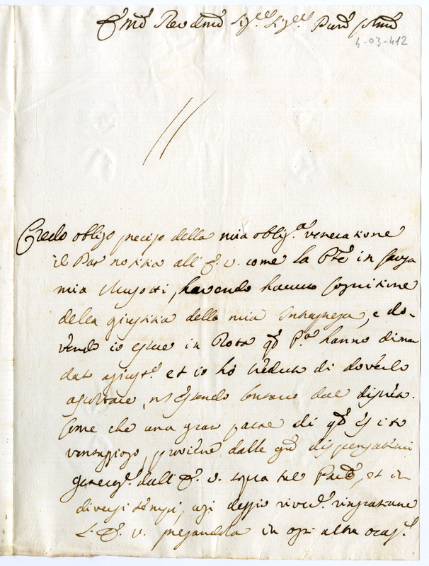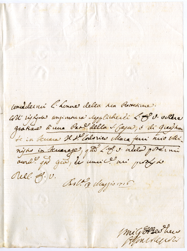 Lettera di Alessandro Pepoli al Cardinale Annibale Albani (1716 maggio 13)