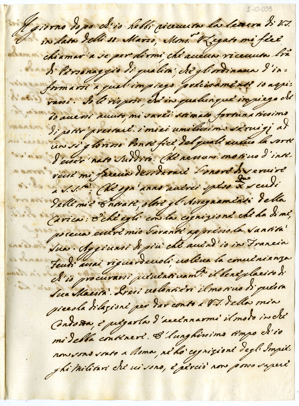 Chiarificazioni circa un incarico offerto dal Vice Legato allo scrivente (1700-1721)