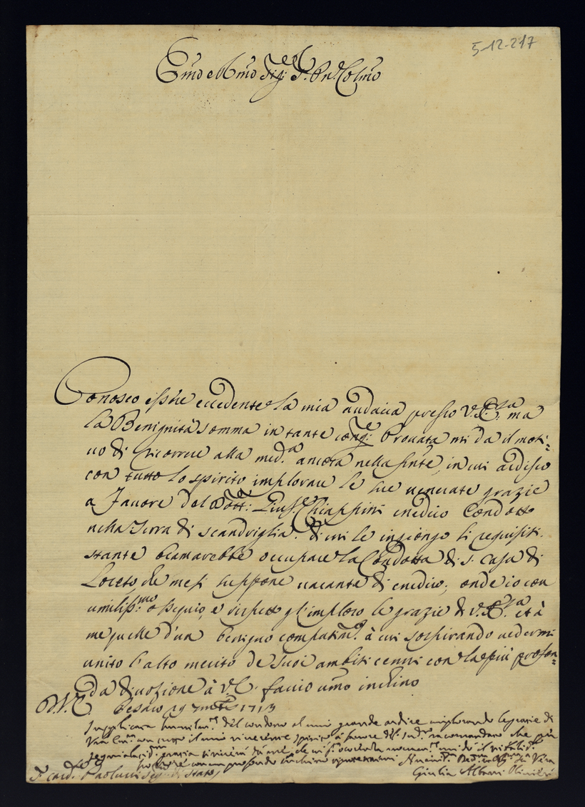 Lettere confidenza. 1713 - 1714 - 1715