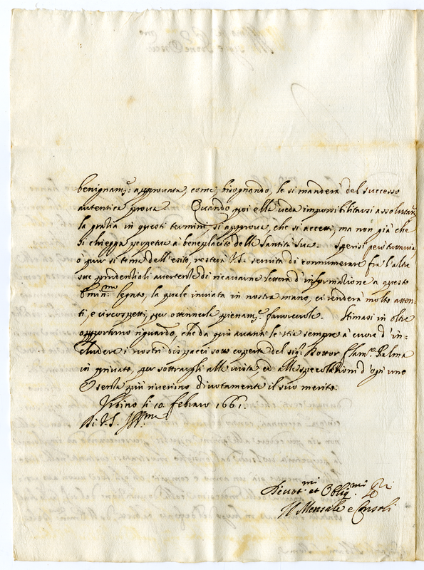Lettera del Mensale e Consoli a Carlo Albani (1661 febbario 10)