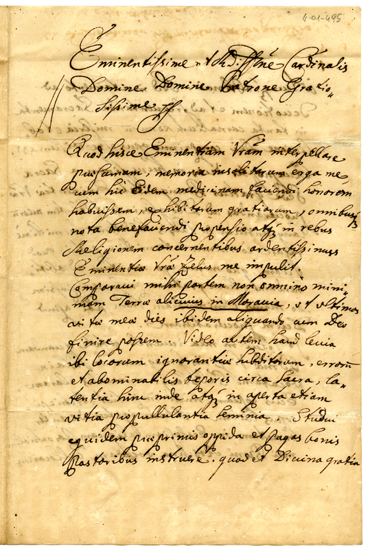 Espone lo stato di ignoranza religiosa di alcuni luoghi della Moravia e chiede al cardinale di favorirlo nella educazione spirituale