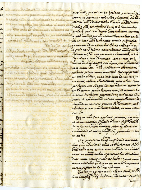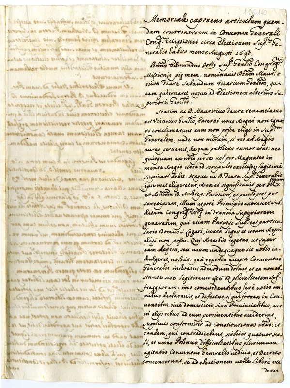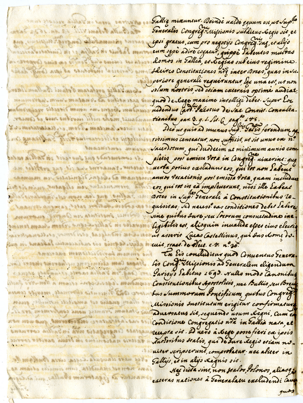 Memoriale sull'elezione del generale della congregazione dei Padri della Missione (1691-1700)