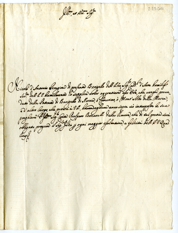 Lettera di Nicolò Perugini ad Annibale Albani (1700-1721)