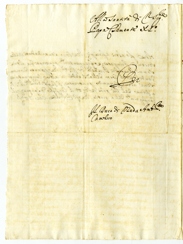 Lettera dell'ambasciatore cattolico duca di Ozeda a Clemente XI (1700-1721)