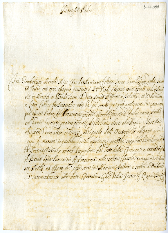 Lettera di fra Giambattista Morella a Papa Clemente XI (1716)